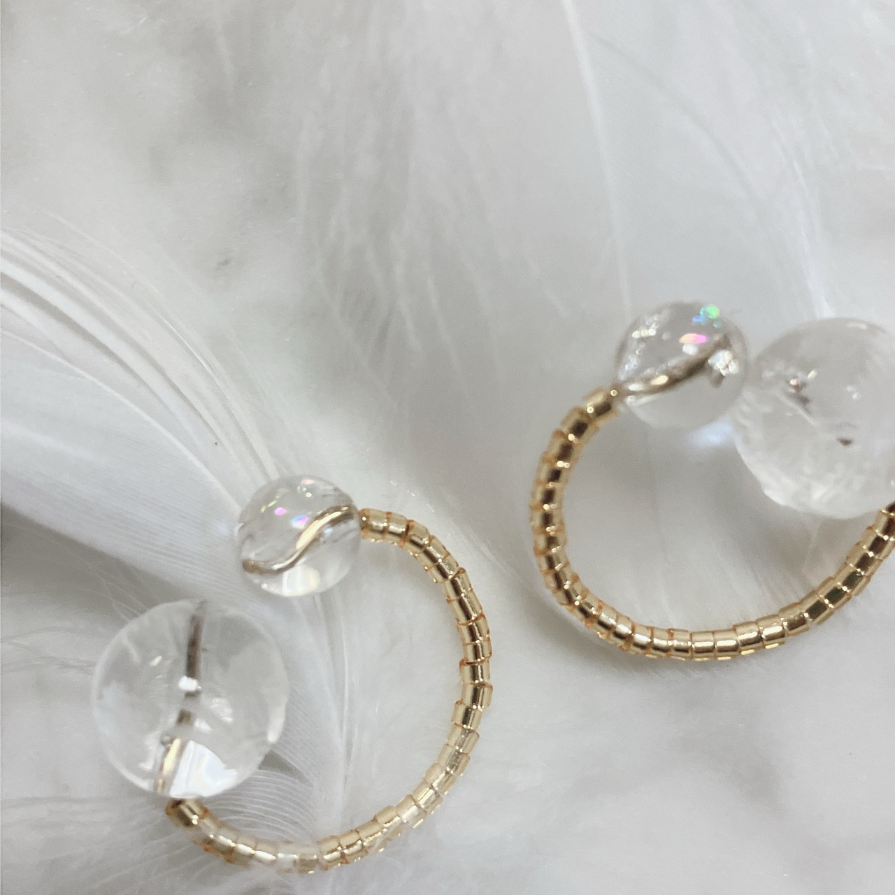ゴールドカラーのビーズは、透明なガラスビーズの内側にゴールドカラーを施したものなので金属アレルギーの方にも安心してお使いいただけます。