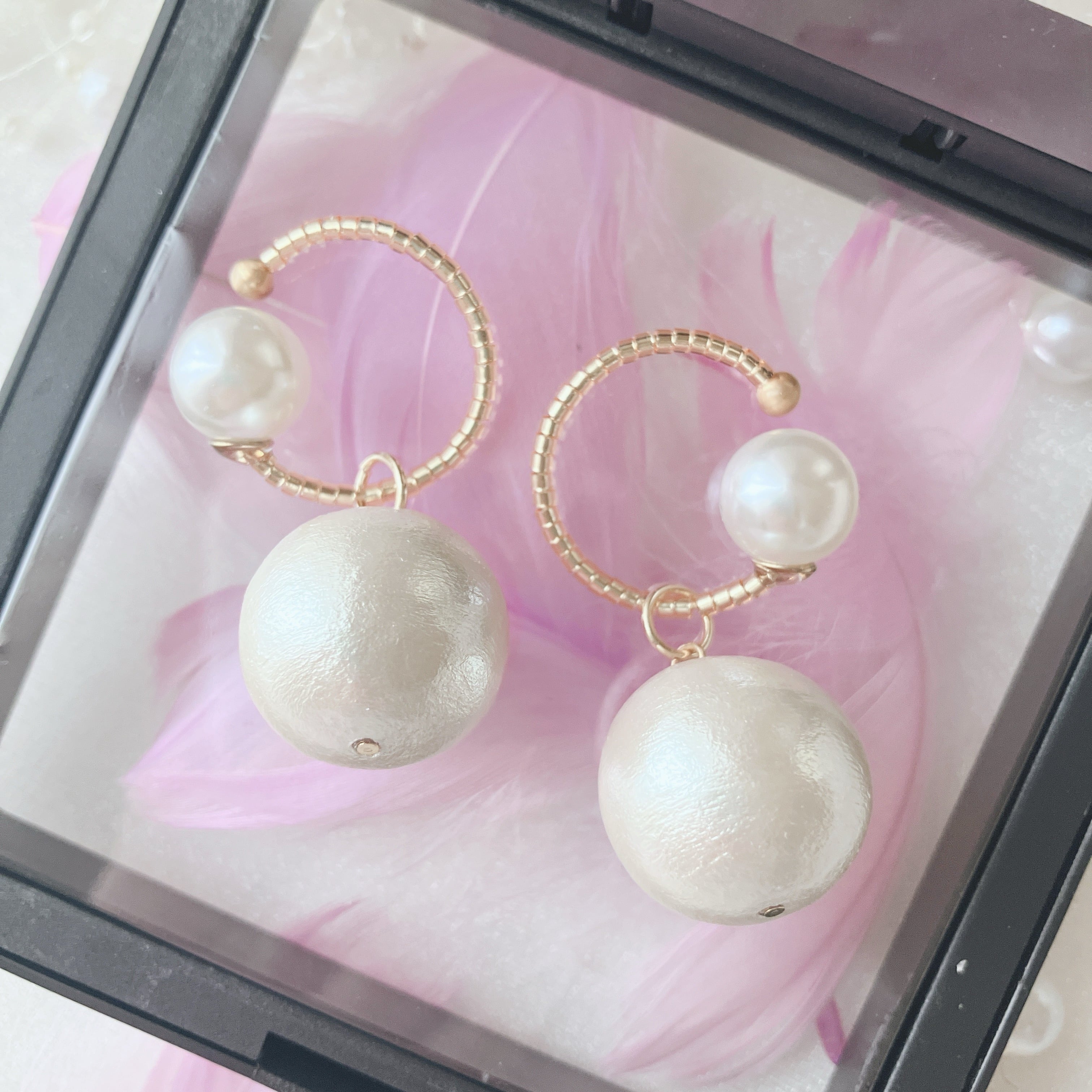 コットンパールは約18ミリのキスカ(黄色みのある白)。
