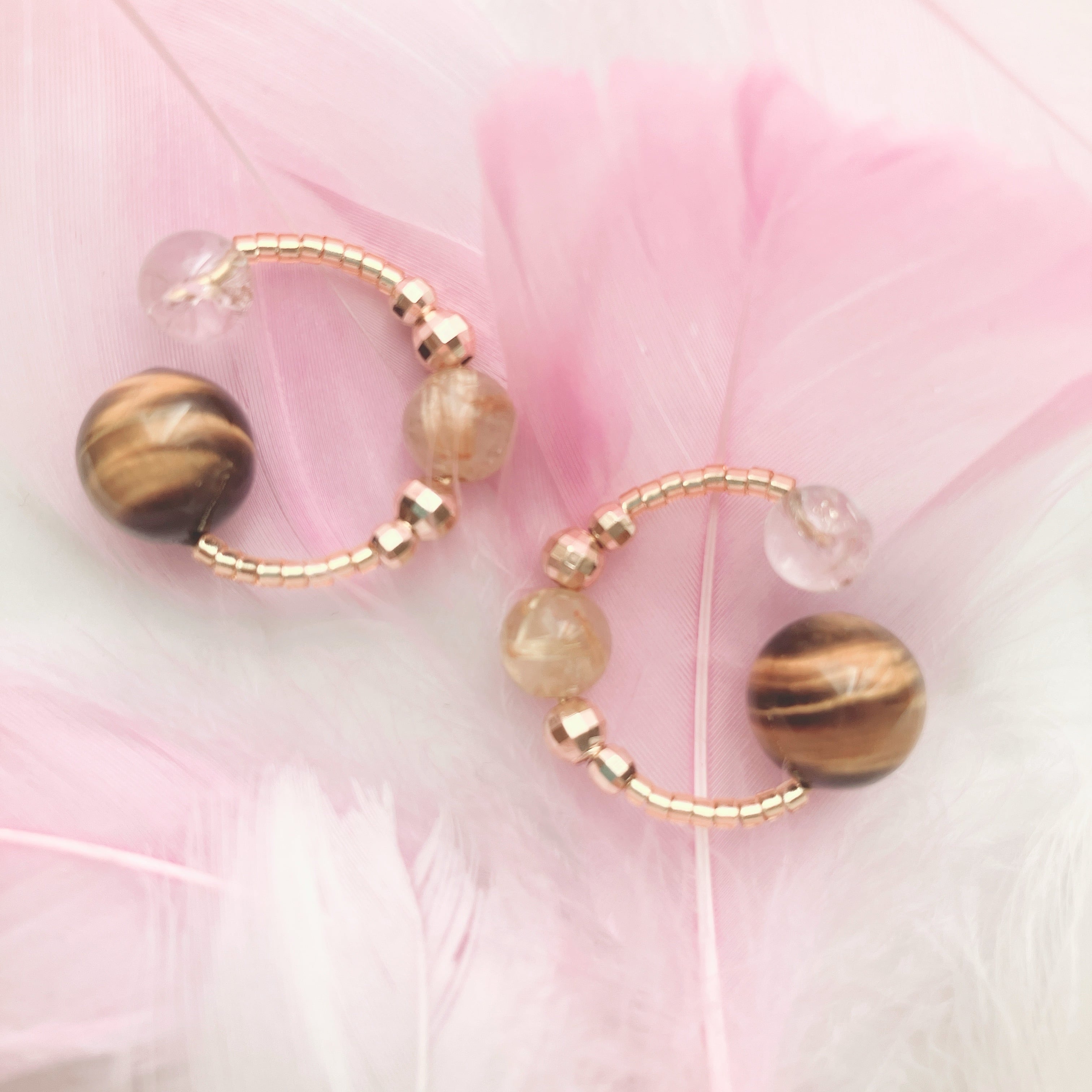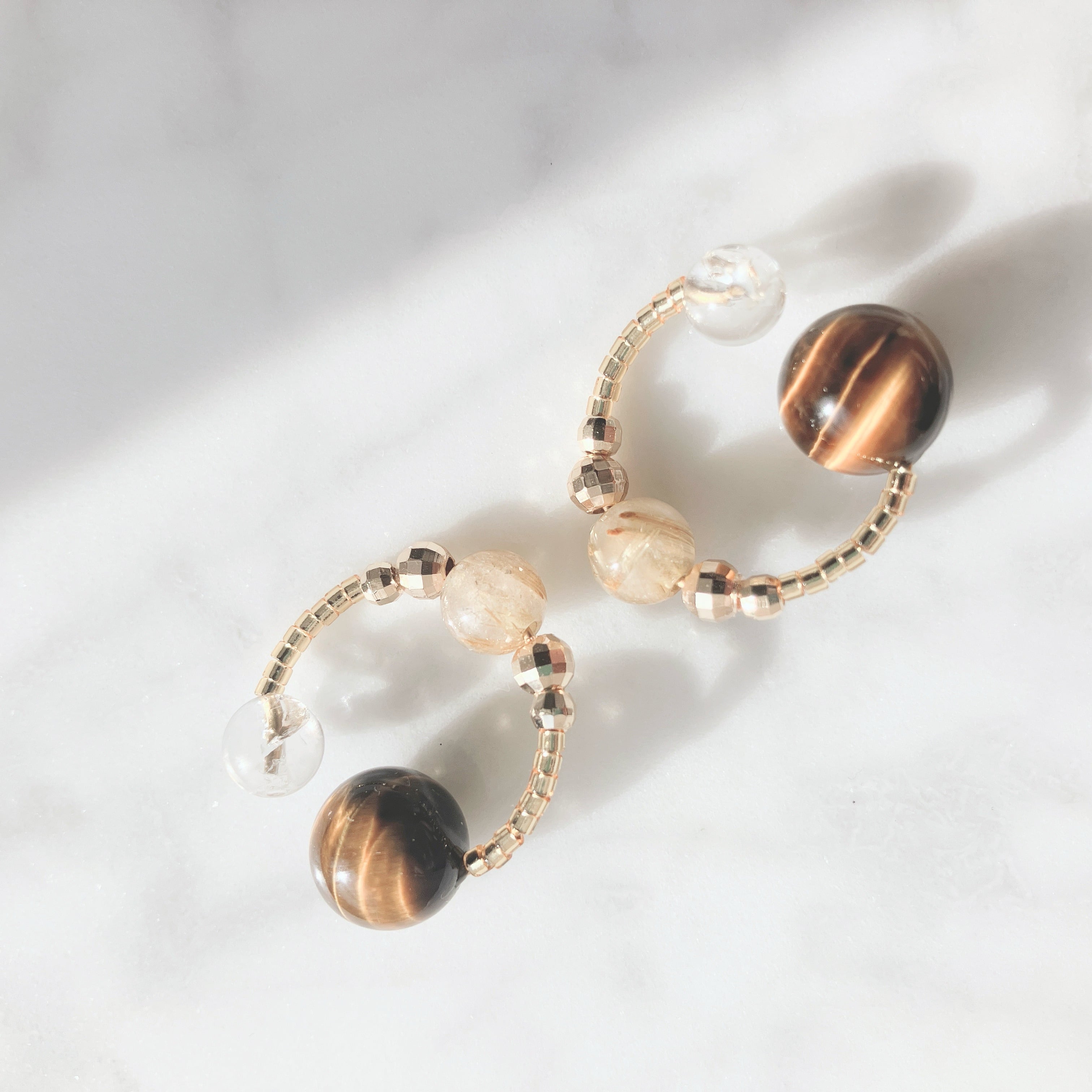 【公式カフ】金運虹福〜最高金運アップの組合せに虹の光が降り注ぐ〜さとう式イヤーカフ(ビューティーカフ)ララアップやイヤーフープご愛用の方にもオススメ・ルチルクォーツ・タイガーアイ・アイリスクォーツ