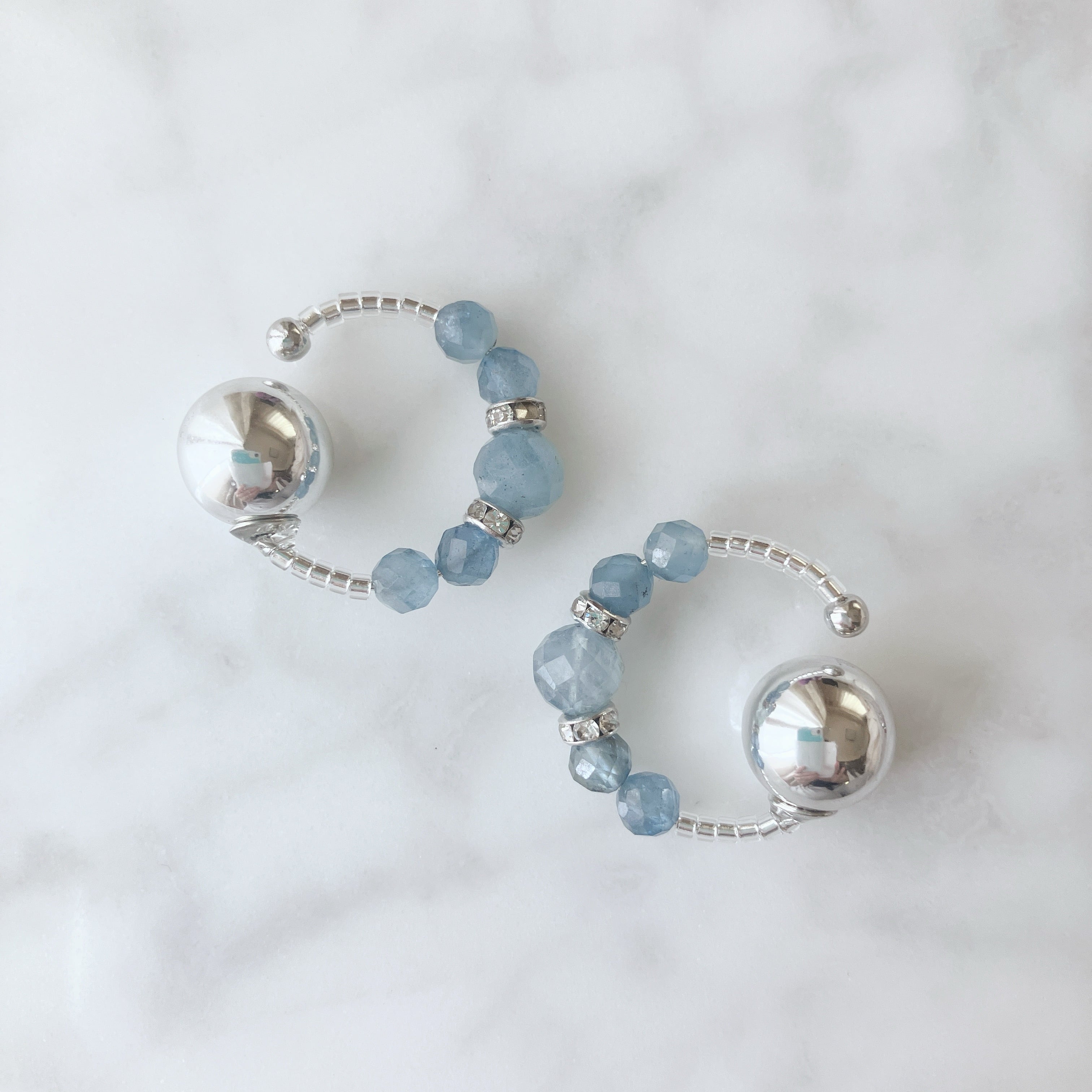 3月の誕生石・アクアマリンのビューティーカフ(さとう式イヤーカフ)