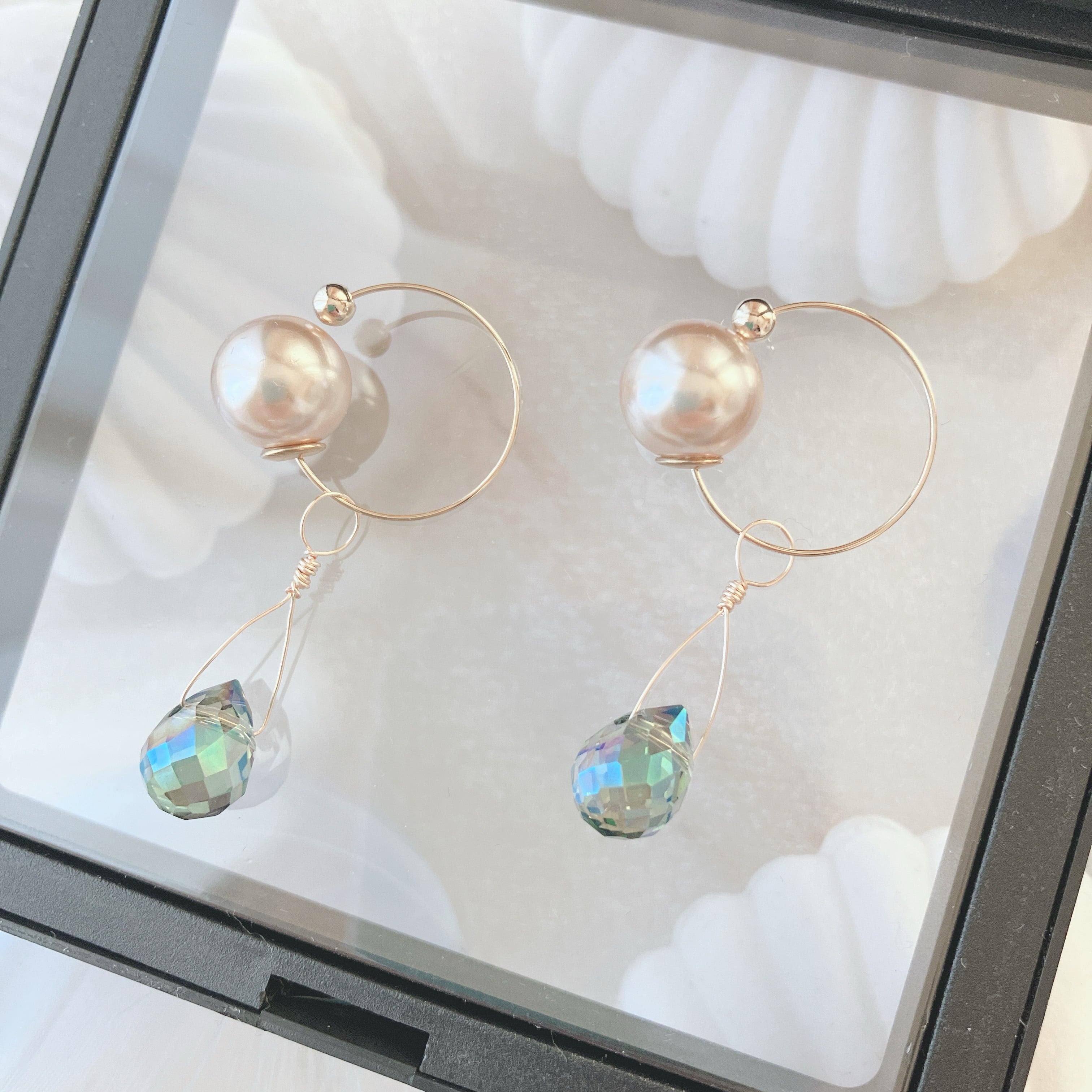 こちらは、金具の色ゴールドのシンプルカフに取り外し可能なキラッキラのビーズチャーム付きになっております。