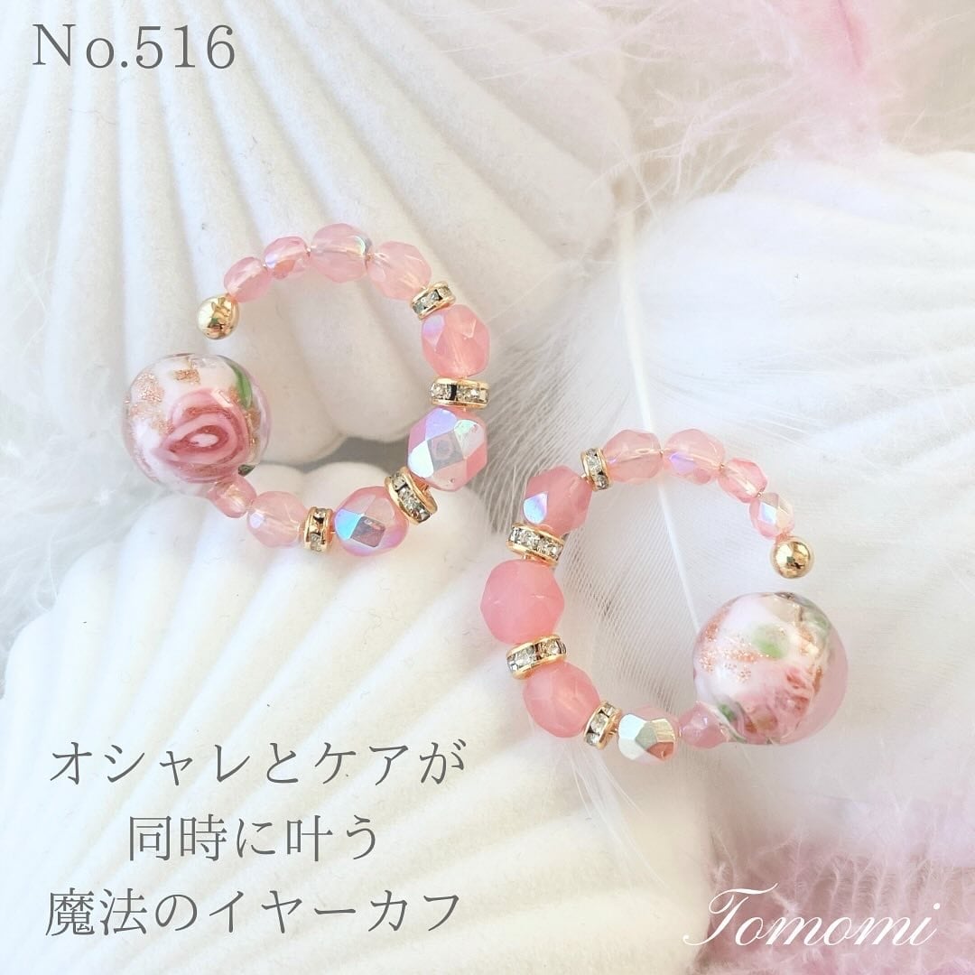 可憐なローズ模様が印象的なトンボ玉ビューティーカフは、桜色のようなピンクのビーズと組み合わせて可愛らしさ満点。イヤーカフなので、ピアスホール無しでも簡単に装着可能です。お手元に置いておくだけで、気分も一気に華やぎます。エレガントで遊び心あふれるカフが、あなたの日常を特別なものに変えてくれること間違いなし!