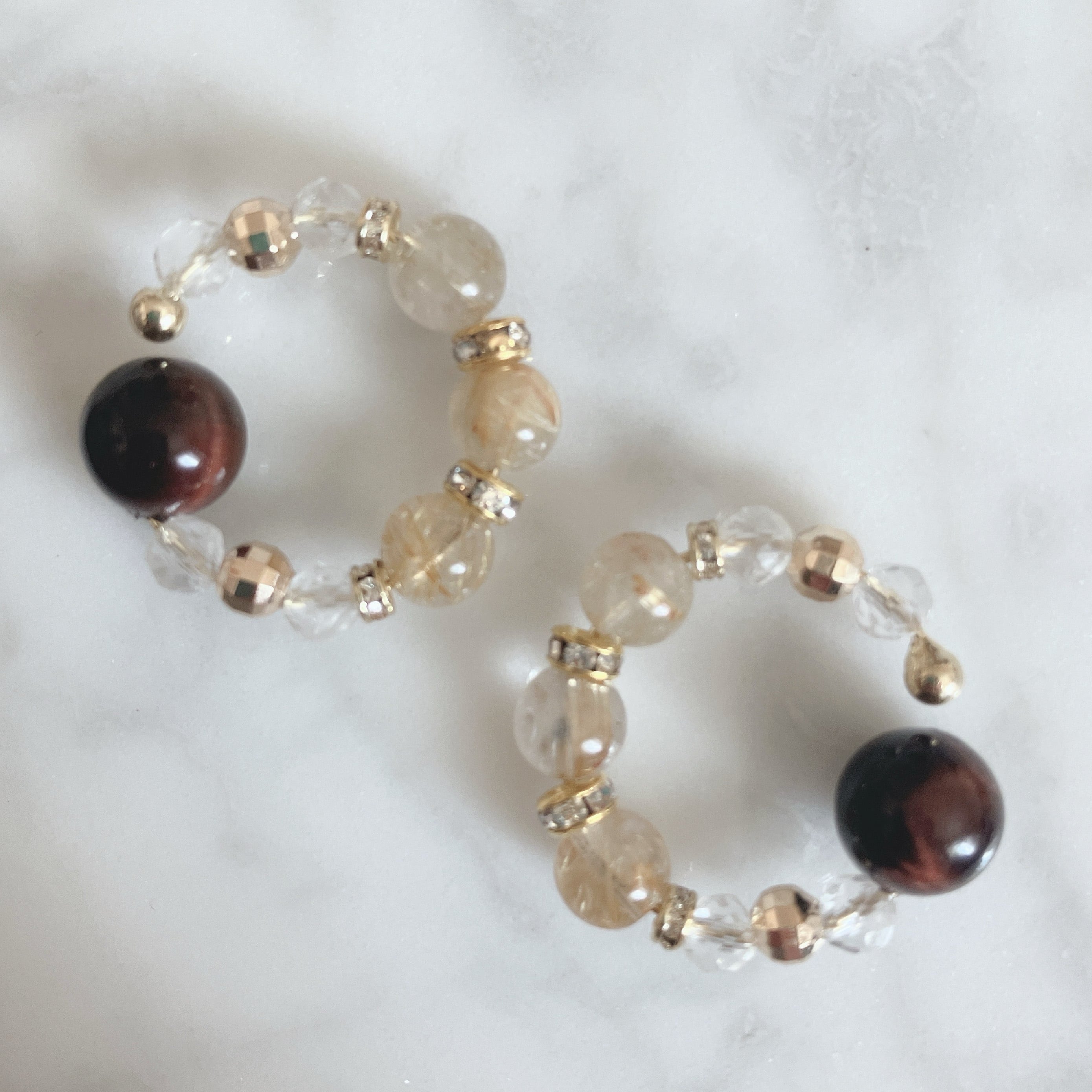 最高金運アップの相性・ルチルクォーツとタイガーアイのビューティーカフ(耳輪ゴムの進化版・さとう式イヤーカフ)