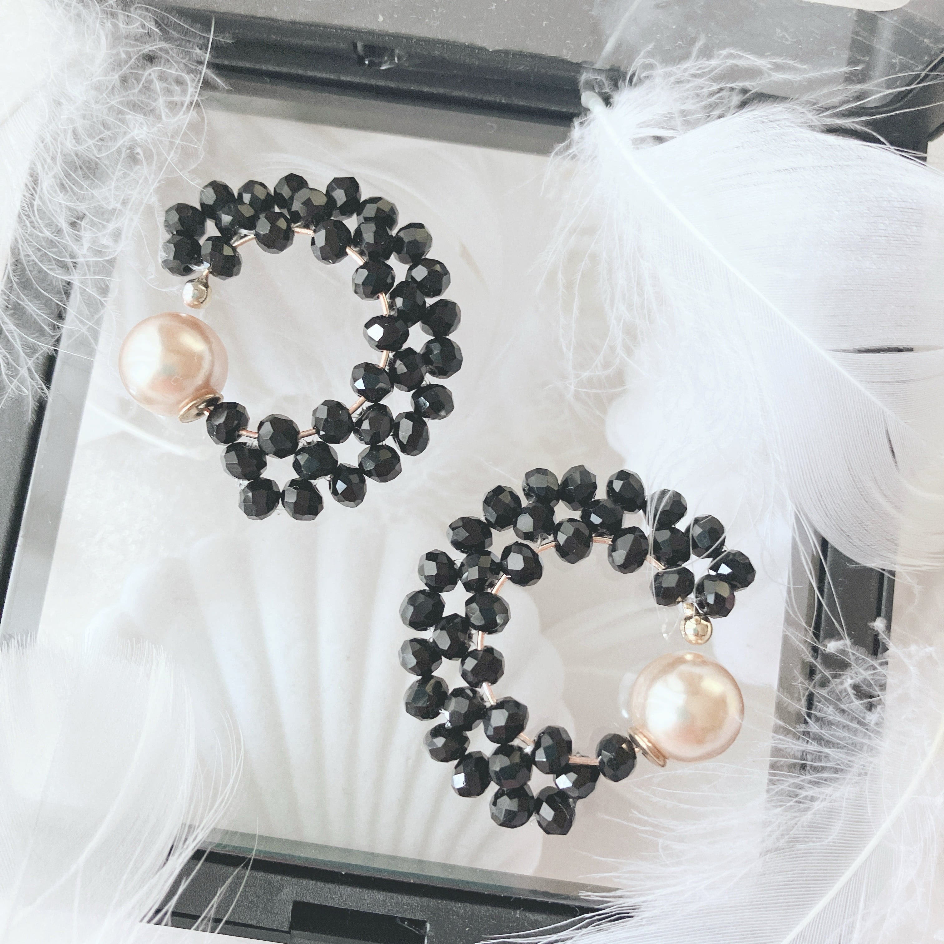 ブラックビーズのビューティーカフは、耳たぶ回しで有名なさとう式リンパケアの理論に基づいたイヤーカフです。シックなブラックビーズとボタンカットが洗練された雰囲気を演出し、秋の装いにぴったり。透け感があるため、黒でも重くなりません。