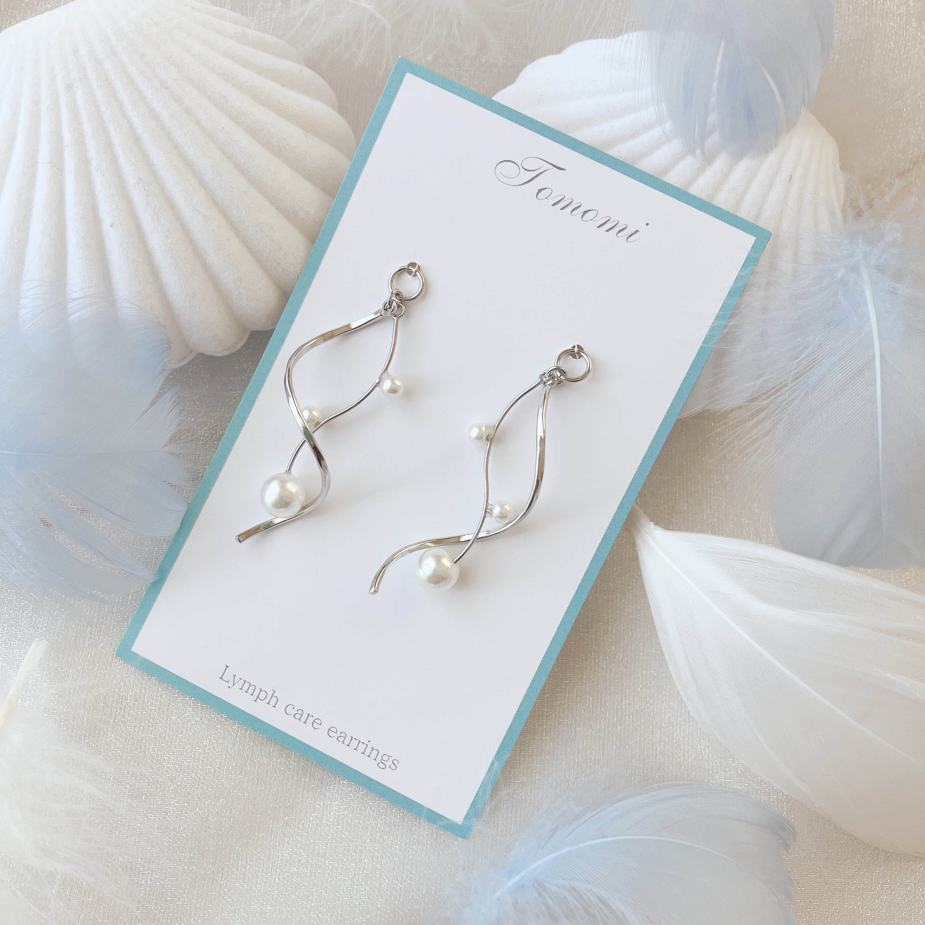 カジュアルスタイルにも合わせやすく、普段イヤリングをあまり使ったことがない方にも取り入れやすいデザインです。写真3枚目のようにあわせると、より華やかになります。